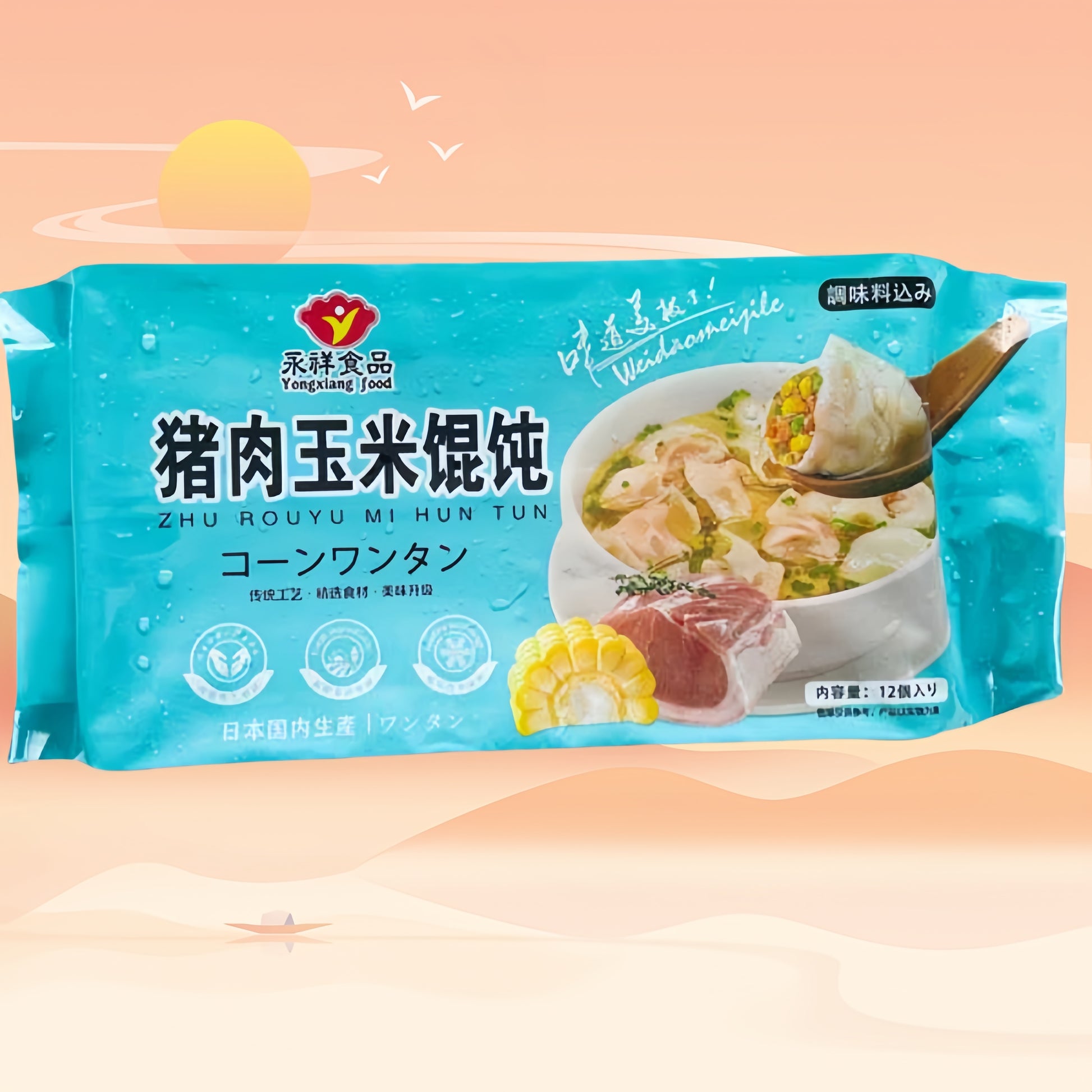 Hoành thánh thịt lợn và ngô thủ công 18g*12cái đông lạnh
